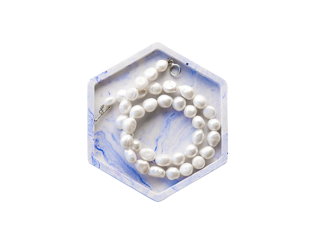 Celestial Hexagon Tray kombinerer et unikt sekskantet design med elegante marmorerede detaljer. Perfekt til smykker, nøgler eller andre småting. Dens geometriske form og fine finish gør den til et iøjnefaldende element i enhver indretning, hvad enten det er i soveværelset, badeværelset eller stuen. Håndlavet med omhu og sans for detaljerne.